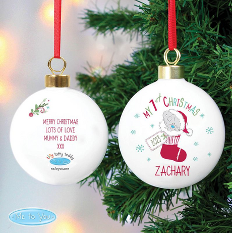 Personalised First Christmas Tiny Tatty Teddy Bauble