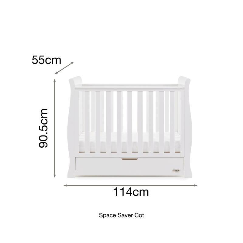 In white, the Stamford Space Saver Cot is a great option if you're looking for a smaller cot for your little one.