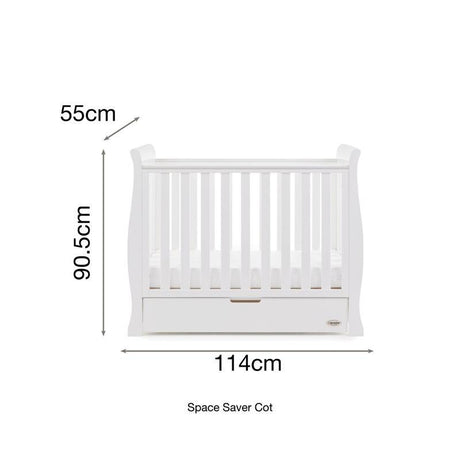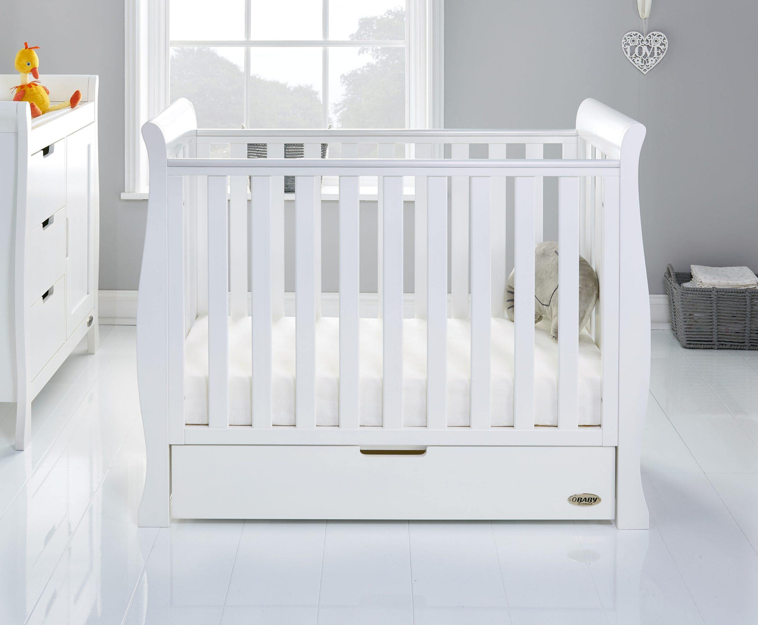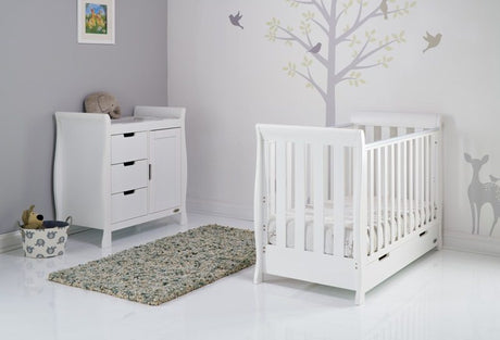 With the sleigh scroll approach the Stamford is one of the more luxury nursery sets. Available in white or grey, the Stamford has the choice of 3 different sized Cots: Space Saver, Mini and Full Sized and you can purchase items individually or as a Room Set.