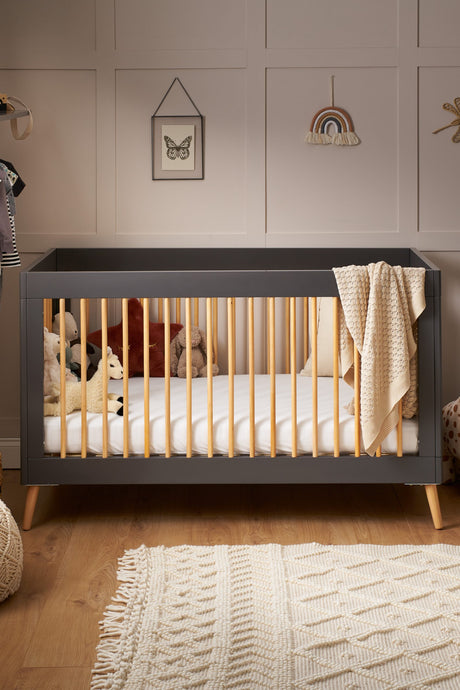 Scandinavian in design, this Maya collection comes in both white & natural and slate and natural. Choose to purchase individually or as a set with a choice of 2 Cot Bed Sizes: Mini and Standard.