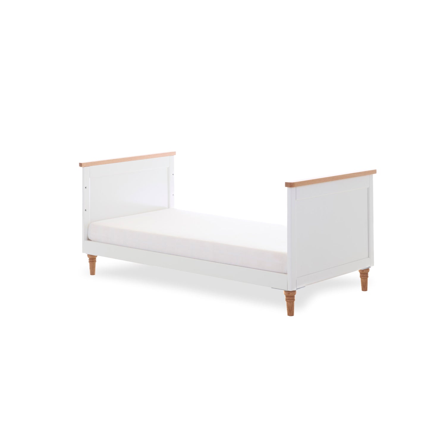 From the Orla Range at Obaby, the Orla Cot Bed features a solid oak trim and delicately hand-crafted feet to set it apart from the traditional white cot.