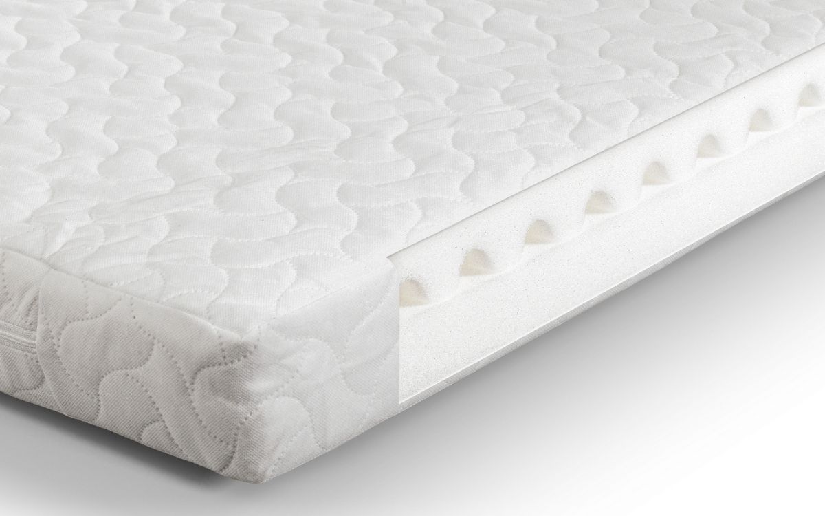 The Airwave Foam Cotbed Mattress with its breathable foam core and unique dual layer Airwave system offers 2 different comfort levels. Finished in a moisture repellent, removable zipped cover that can be easily cleaned. Suitable from Birth. 10cm deep offering a comfortable and supportive sleeping surface as recommended on the National Childbirth Trust website.