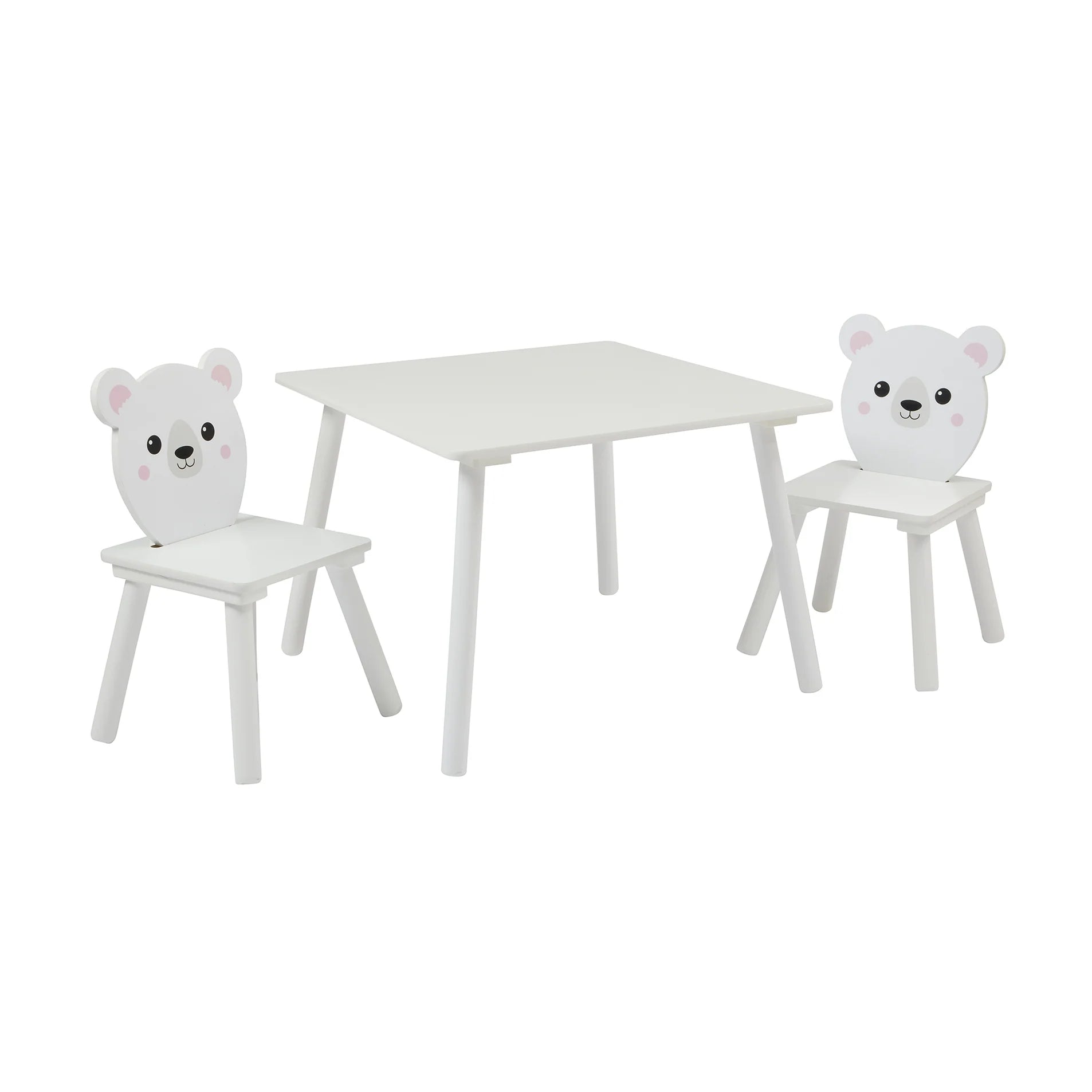 - White table made from durable pinewood with child friendly lacquered top to easily wipe down and keep clean.