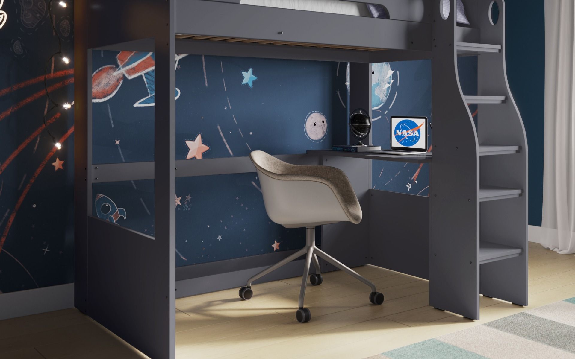 With a single bed at the top and a desk underneath, not only does it give your child somewhere to sleep, they also have somewhere to work along with plenty of space too.
