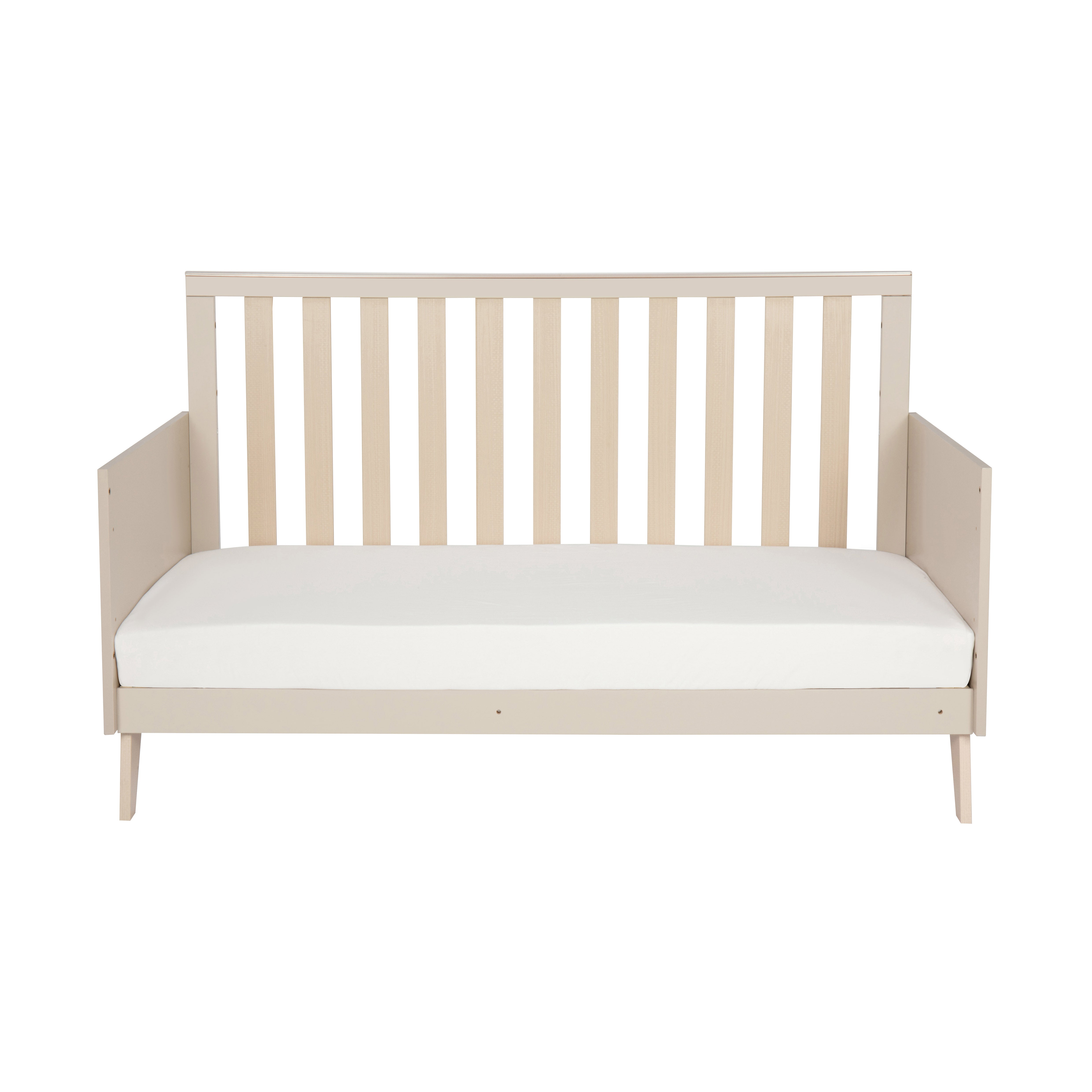 - At around 18 months (or whenever your baby is ready) you can remove the cot sides, add the rails and you have a Toddler Bed. The rails will hopefully protect them from rolling out, but it's also still relatively low to the ground so they can get in and out with ease.