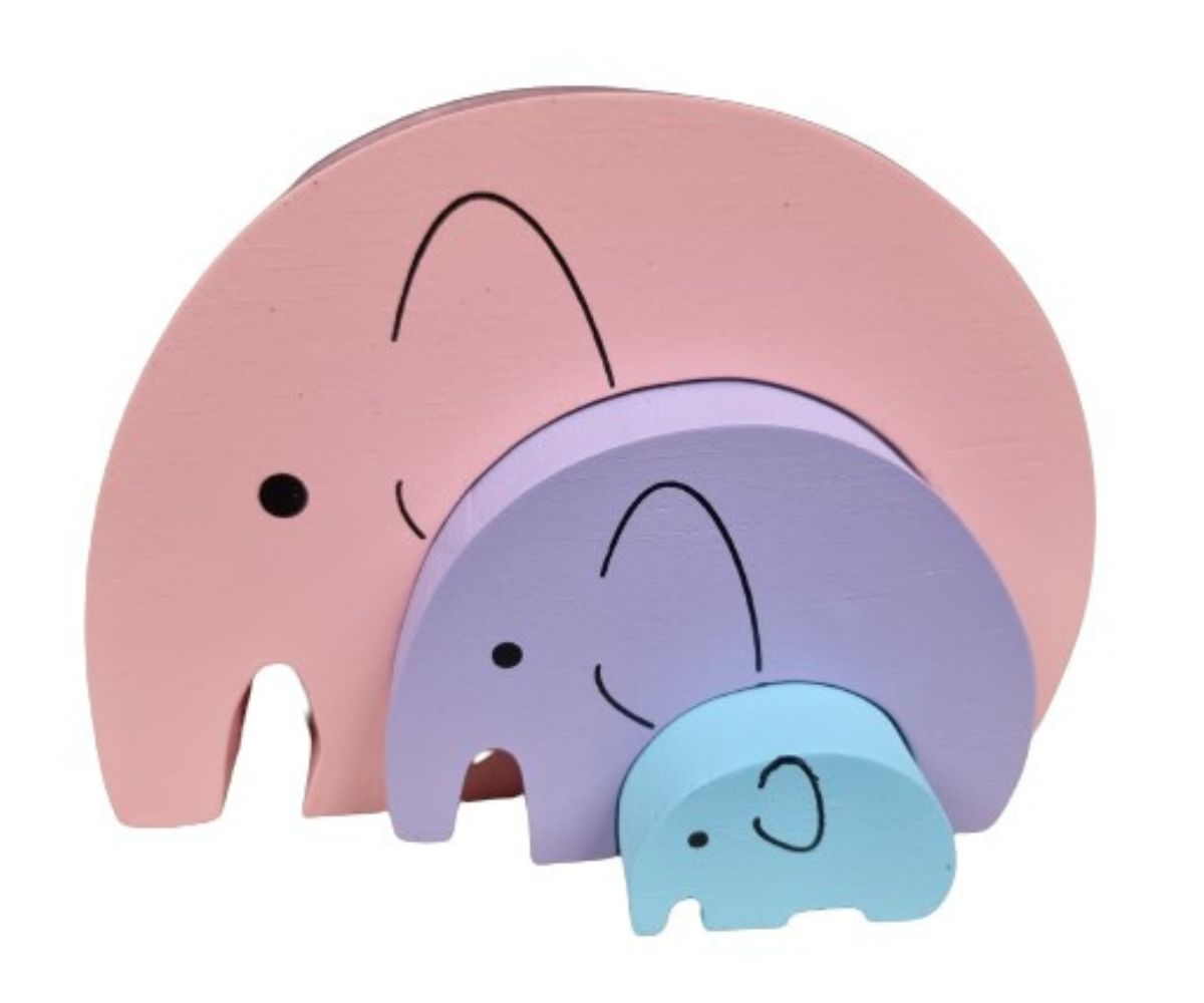 Our traditional coloured elephant puzzle stacking toys are fair trade and handmade from sustainably sourced wood.