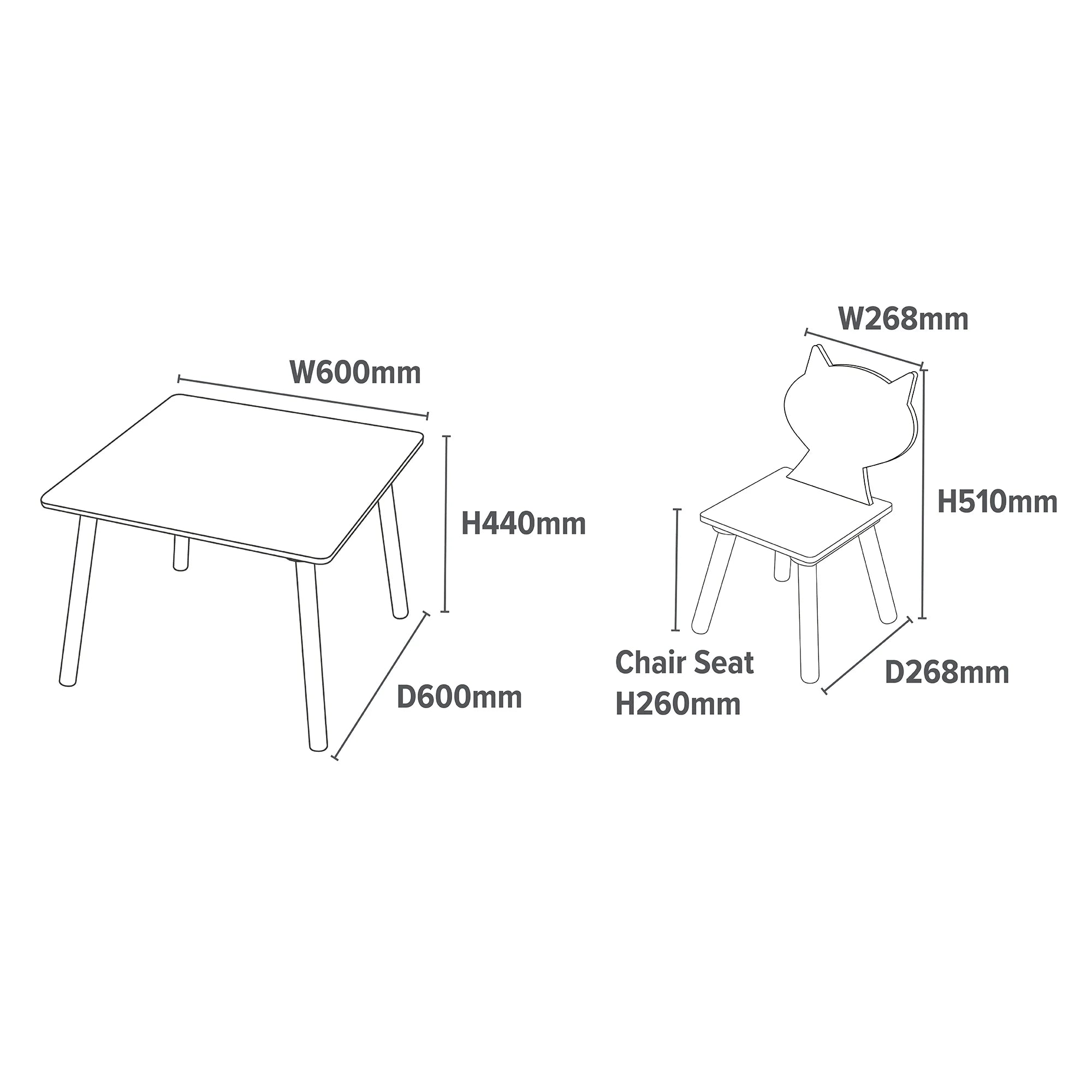 This Toddler Table and 2 Chairs features a White Table and a Fox and Squirrel chair is perfect for your little one's Bedroom, Playroom or your living room.