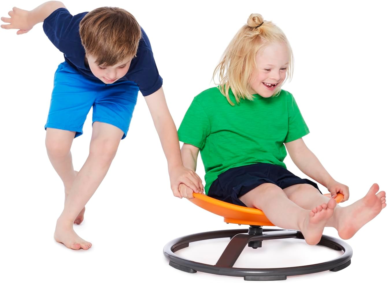Our children have Autism and ADHD and they love to swing, rock, climb, be active - in fact very rarely sit still! If they find a 'spinny chair' they're in it for hours. If they find a spinny stool they're laid on it going round and round. I'd love to know how it doesn't make them go dizzy!