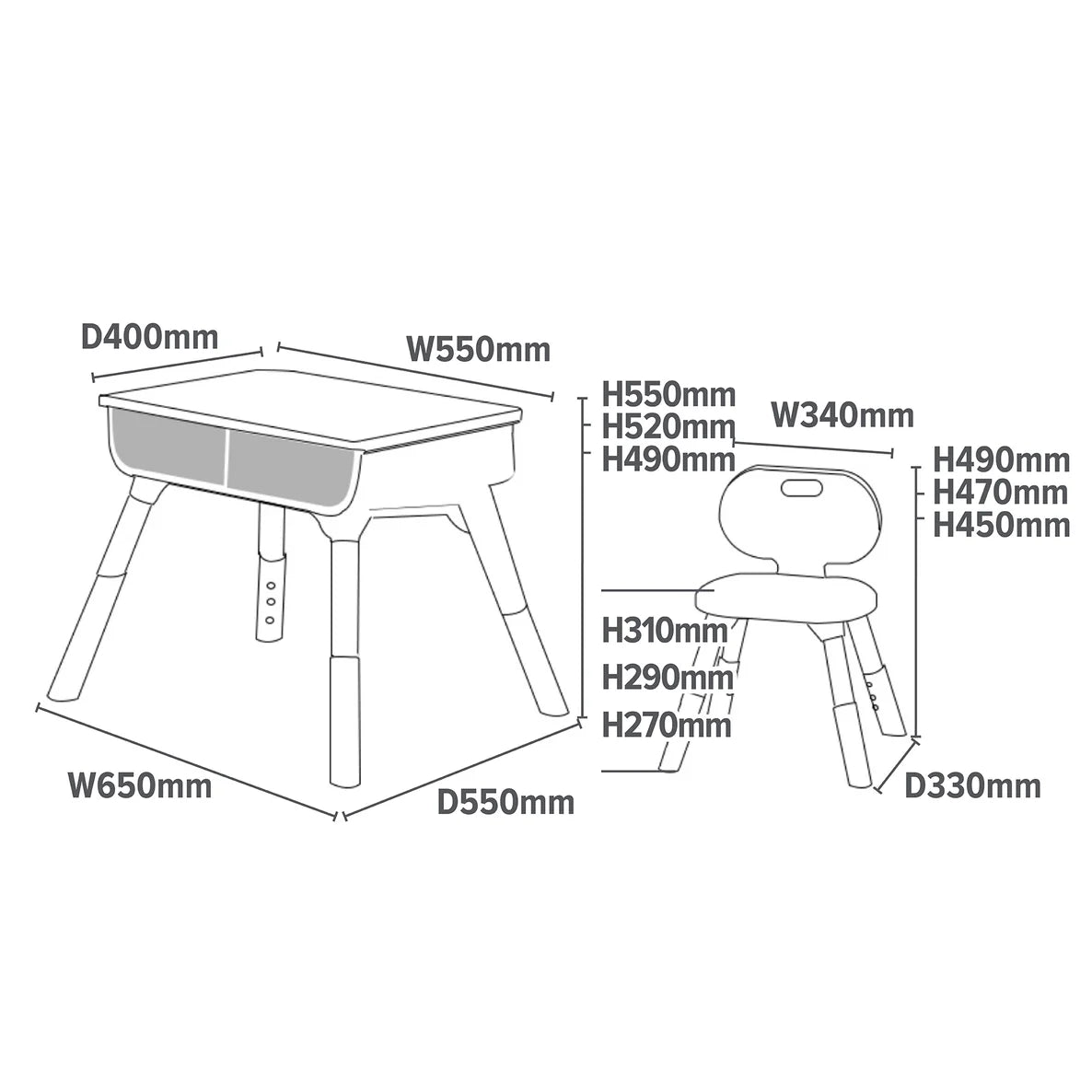 • As your little one grows, you'll be able to adjust the height of both the table and the chair so it will last them to around 7 years old.