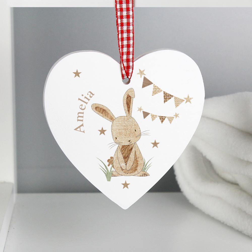 Hessian Friends - Rabbit Wooden Heart Decoration