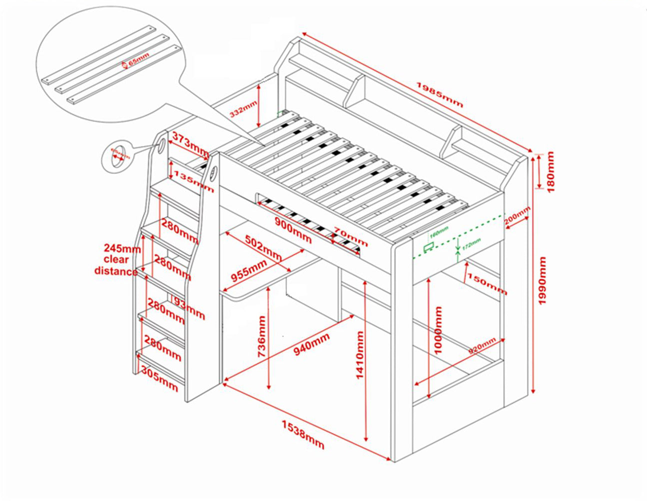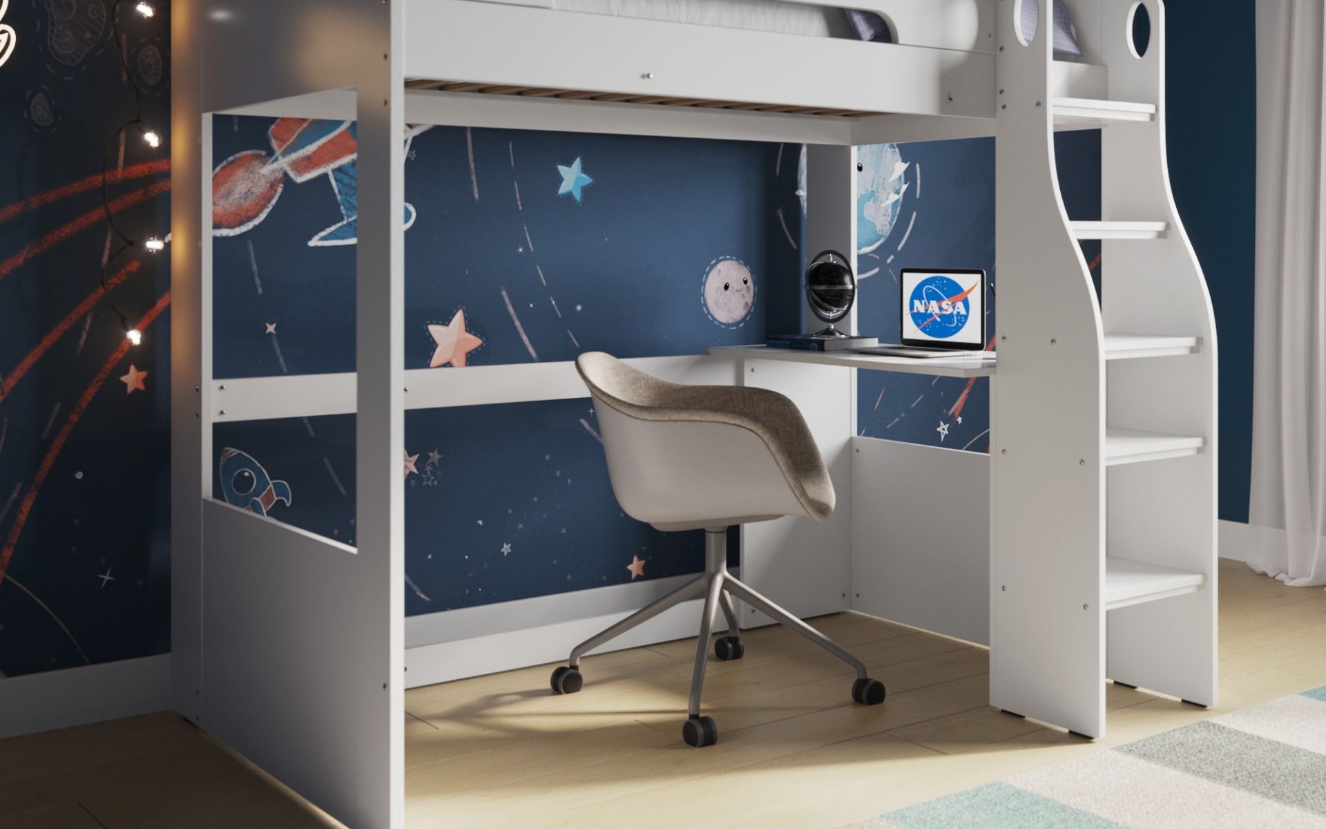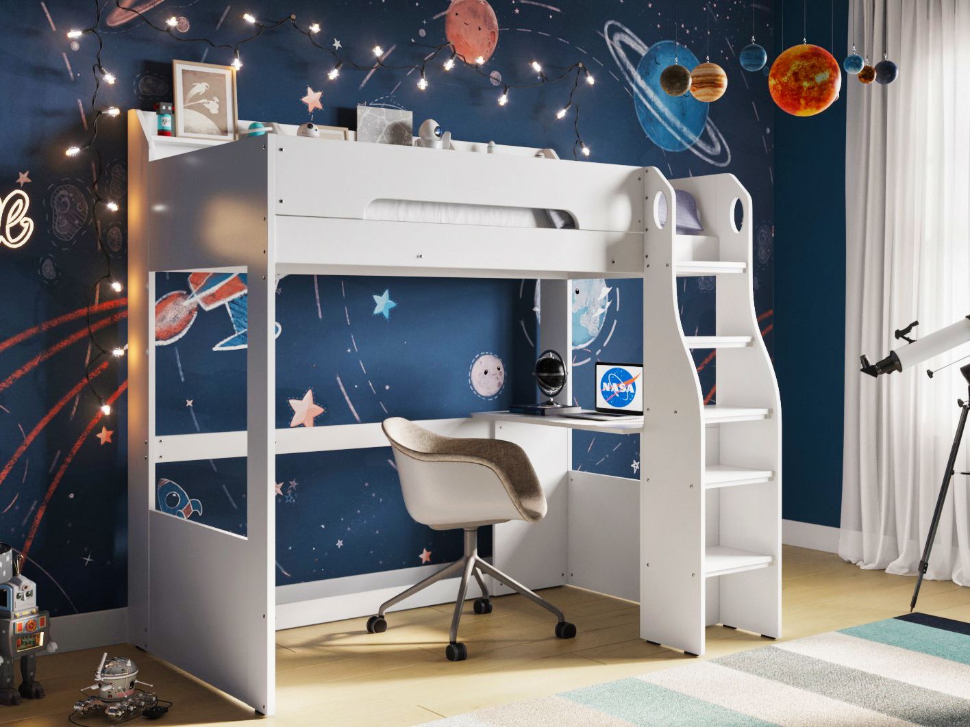 With a single bed at the top and a desk underneath, not only does it give your child somewhere to sleep, they also have somewhere to work along with plenty of space too.