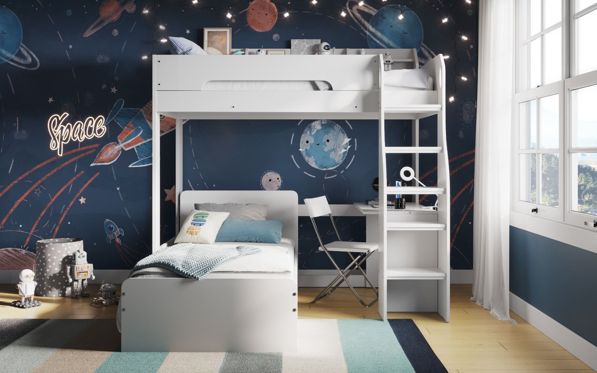 The Cosmic L-shaped Bunk Bed is the perfect choice if you're looking for a space-saving solution! Designed to provide two comfortable sleeping areas while giving you enough space to fit your other bedroom furniture.