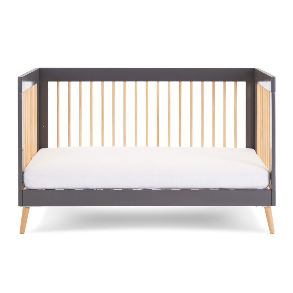 With it's scandinavian design, this Slate and Natural Cot Bed from the Maya range at Obaby is a great 4 in 1 design that's built to last your little one from baby to around 4 years of age.