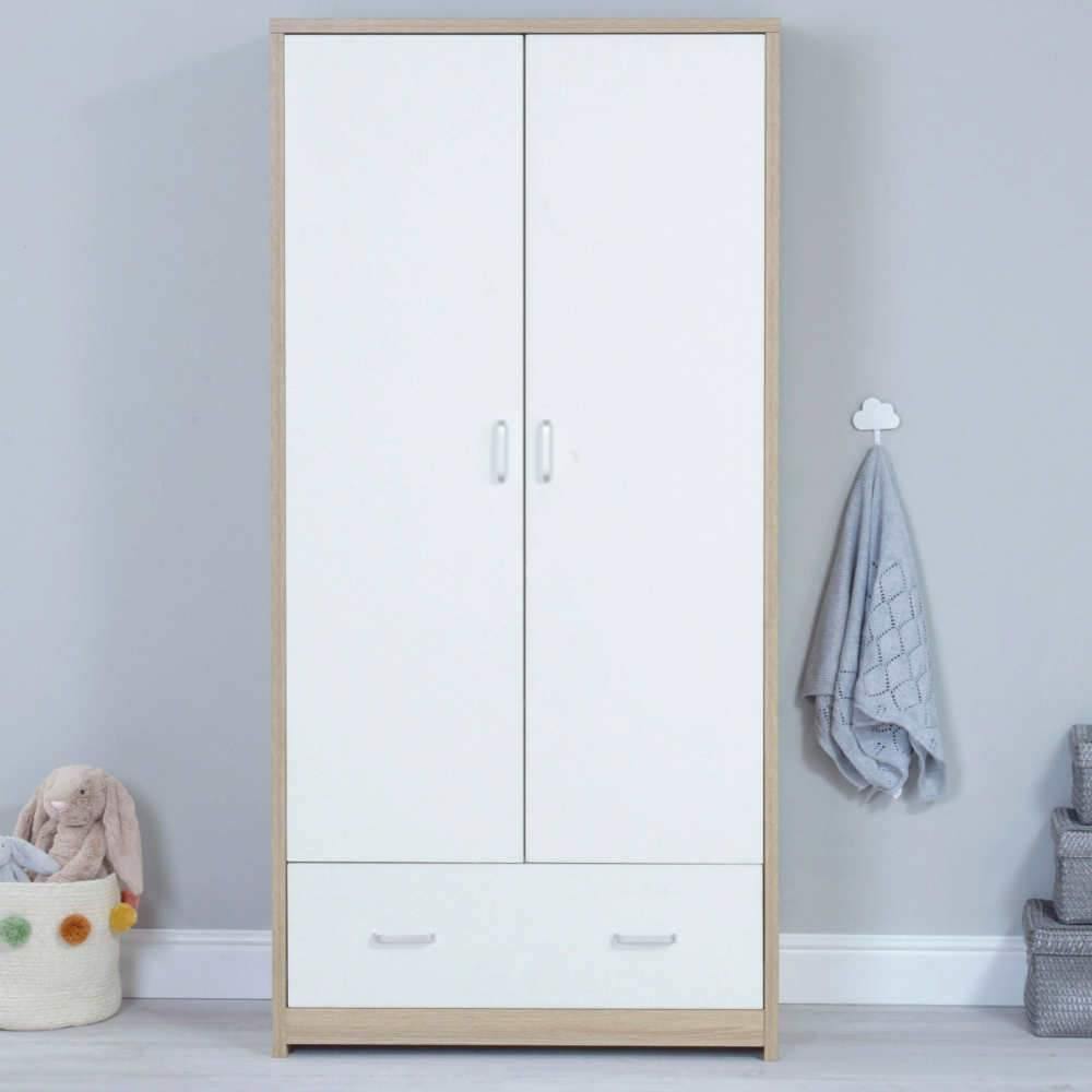 Beautifully stylish with a natural warm oak to suit any baby's nursery" This simple yet beautifully styled Cot Bed which is available in 2 colours: Warm Oak or Oak & White, is complimented with a Chest Changer and Wardrobe in the same design and colours.