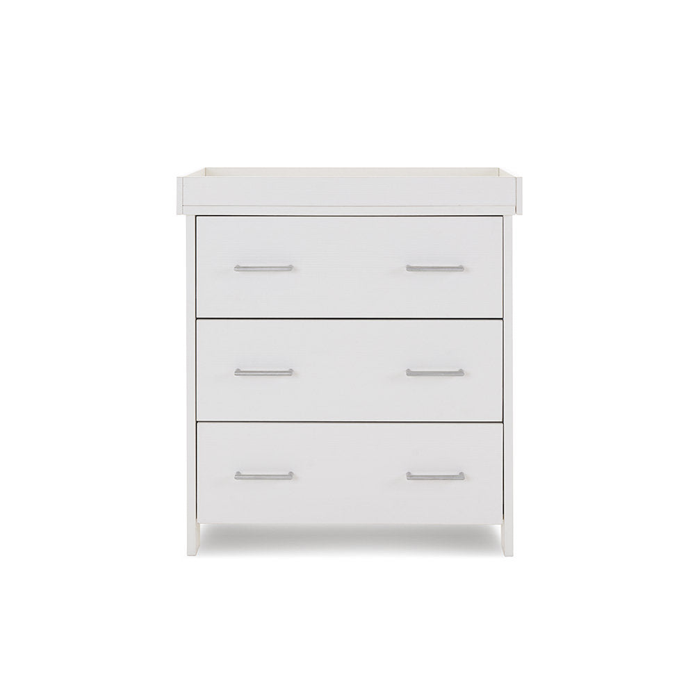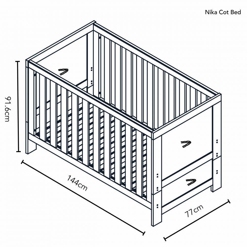 The Nika 2 Piece Nursery Room Set from Obaby features a chunky slat design for it's Cot Bed and a Chest of Drawers with a removable Changing Table so as your little one grows, the furniture grows too!
