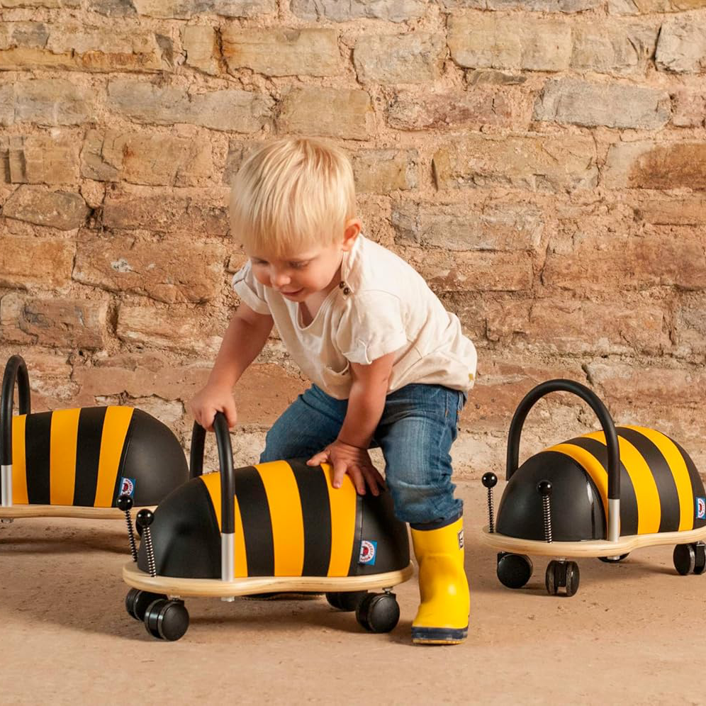 Designed as a Bumble Bee it has a soft padded body for your little one to sit on and smooth rolling castor wheels so the Bee can go in any direction they choose.