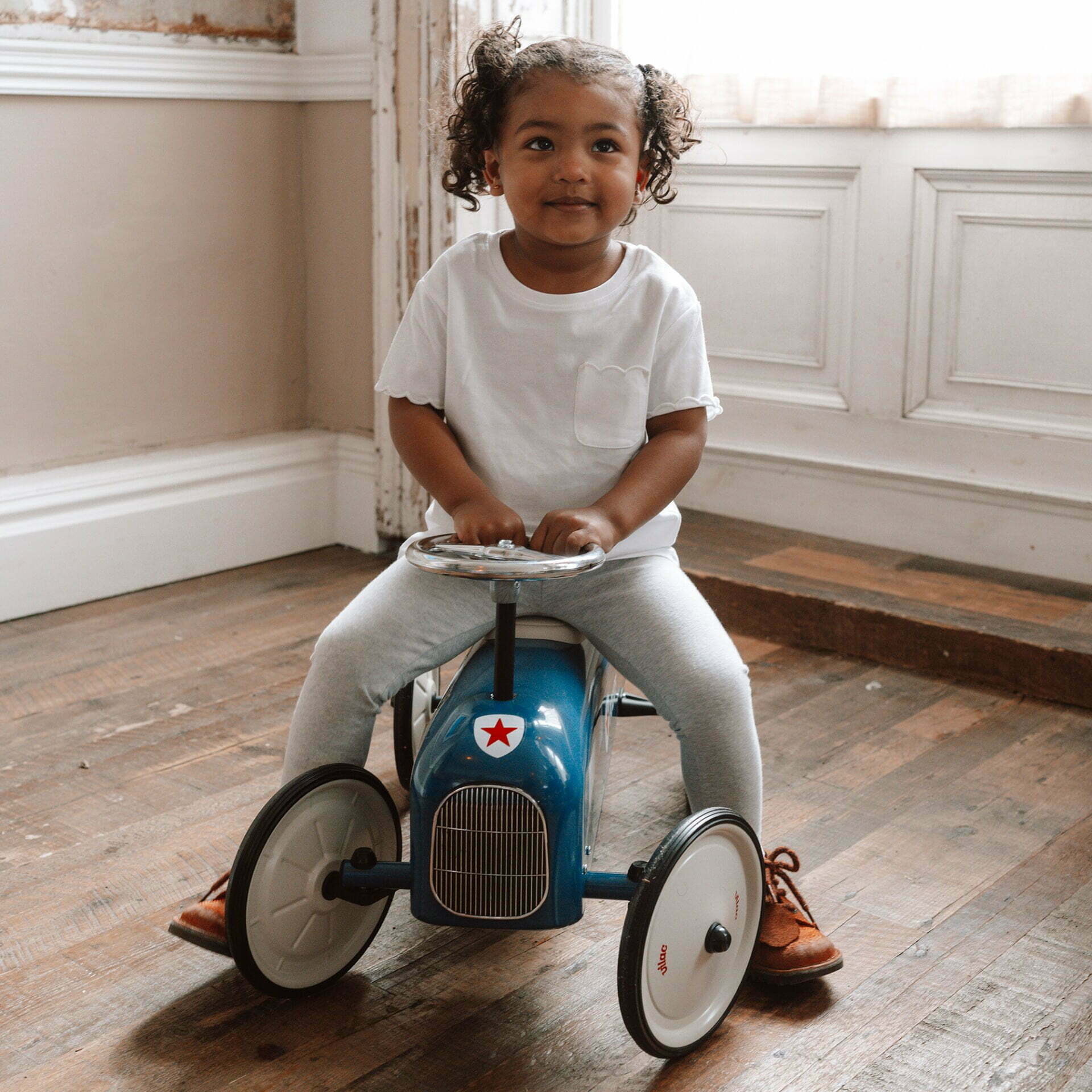 If you've got a little 'Zoomster' in your house who loves to fly around then this little car will get them there just a little faster! They might not be quite ready for pedals but they're certainly ready to use their legs and push themselves around and what better way than buying them their first 'car'?