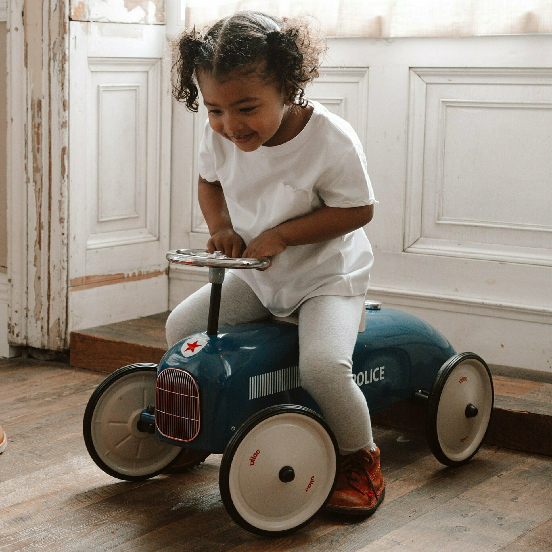You'll love the nostalgia that this metal ride-on car creates. With a vintage look, large rubber wheels it can be your Bambino's first little car that they push-along themselves.