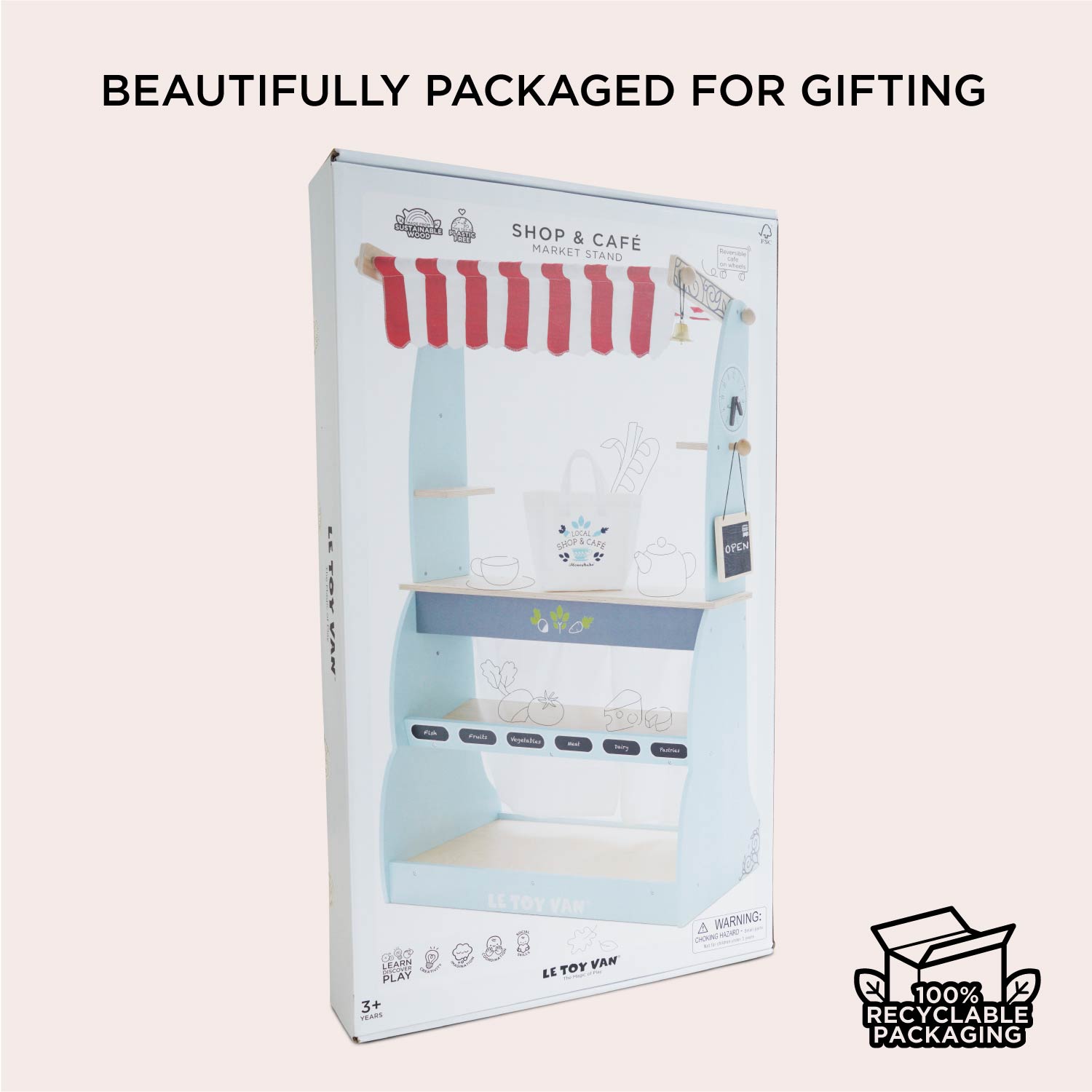 Our amazing wooden Shop and Café stall is a multi award winner and a firm favourite. This 2-in-1 reversible toy is full of wonder and is sure to ignite little imaginations. Designed by our team of talented toy makers for immersive roleplay, day-after-day. Little ones will adore serving customers at the café, then simply turn it around to reveal a market style shop complete with shelves, ideal for housing our wooden food crates.