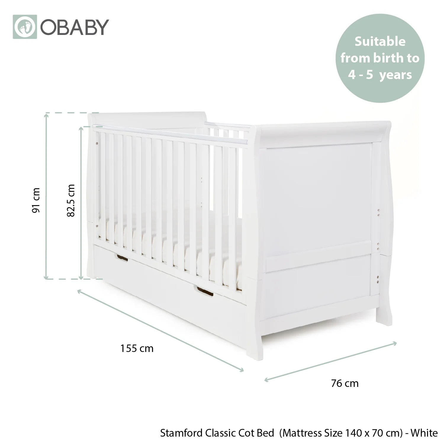 Classic Cot Bed Dimensions:  91 x 76 x 154cm