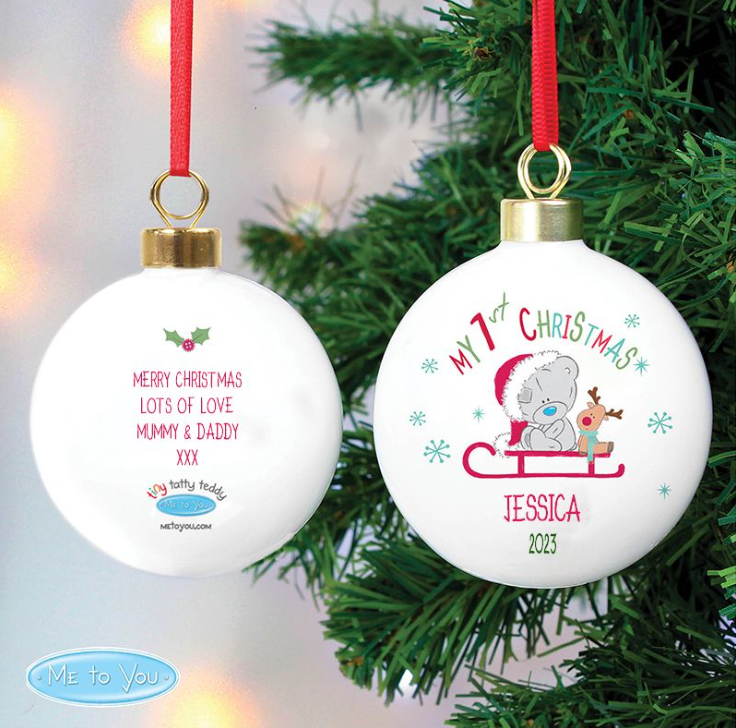 Tiny Tatty Teddy - My 1st Christmas Sleigh Bauble - Personalised