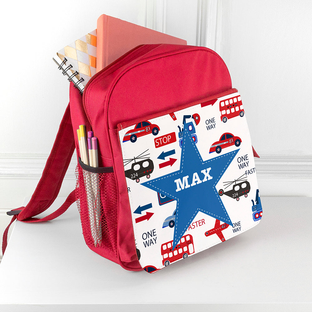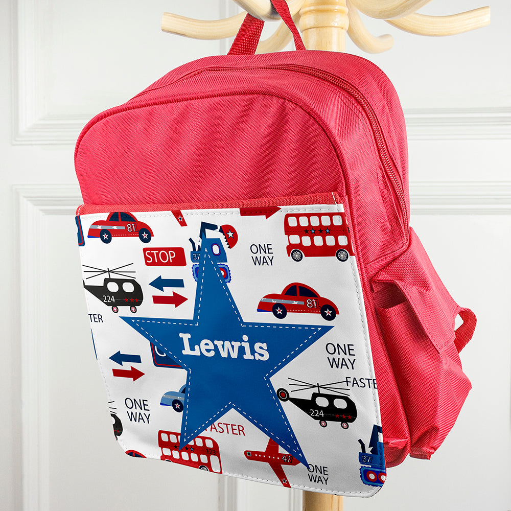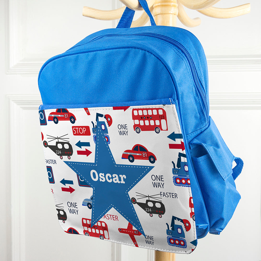 Description Let your little bambino feel all grown up with their very own personalised Rucksack with a Transport theme. Personalise with: Their name (max 12 characters) Read more less Specifications Length: 33.0cm