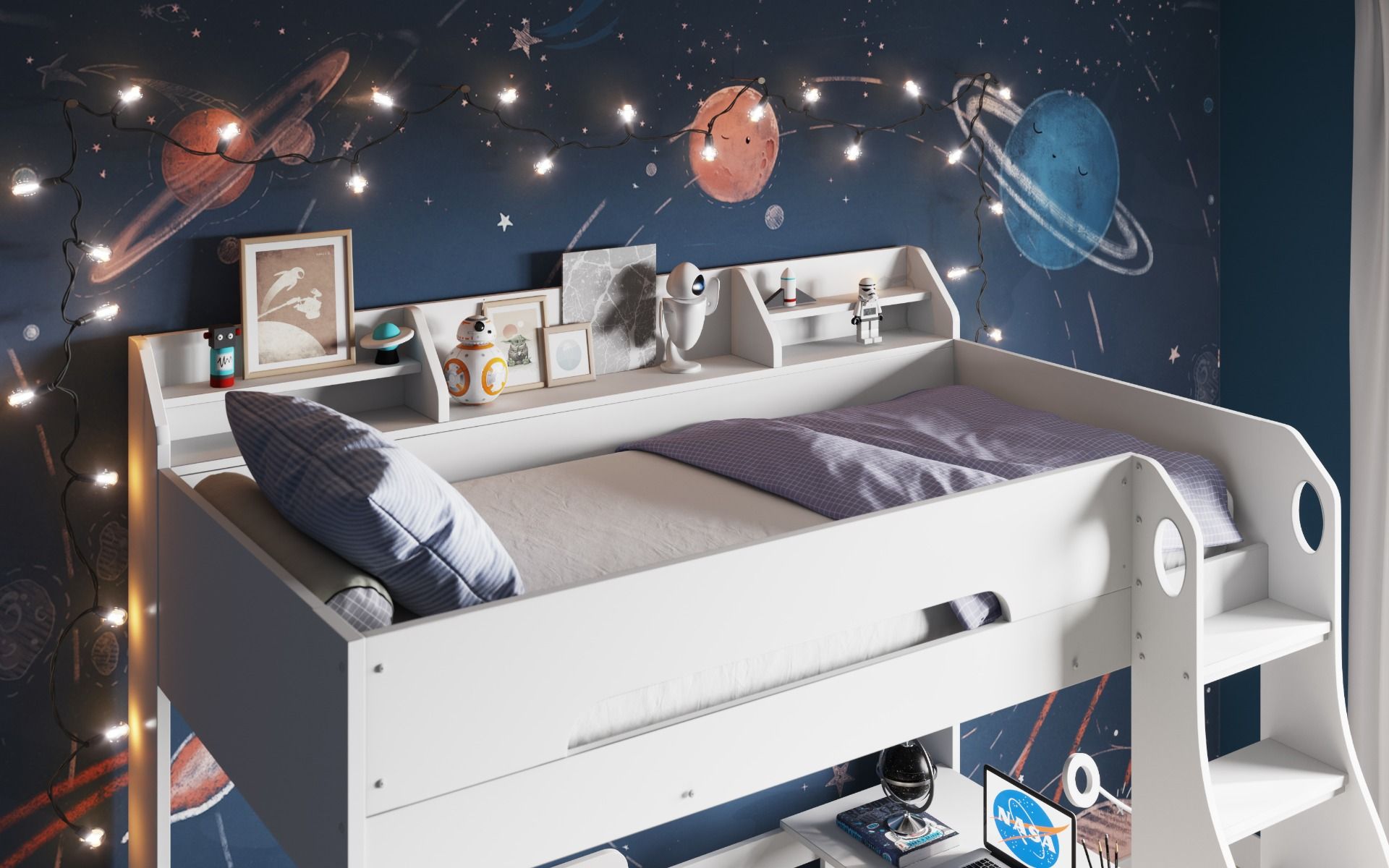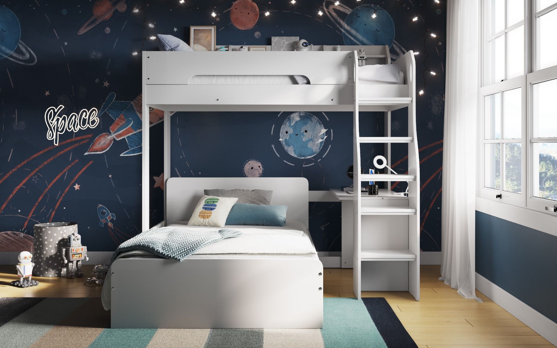 The Cosmic L-shaped Bunk Bed is the perfect choice if you're looking for a space-saving solution! Designed to provide two comfortable sleeping areas while giving you enough space to fit your other bedroom furniture.