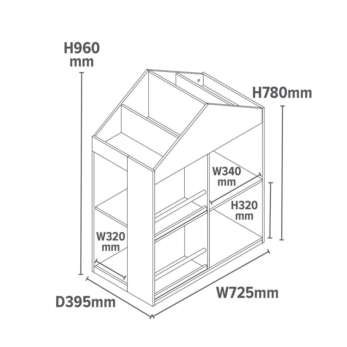 A child's bookcase in the shape of a Dollshouse with plenty of storage is a great addition for keeping books and toys tidy.
