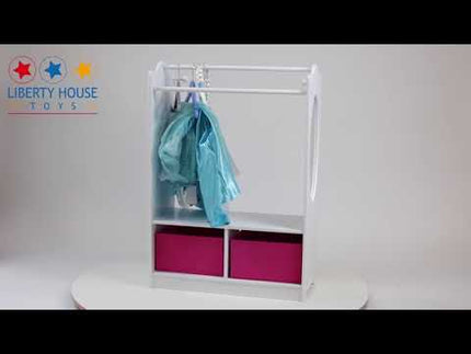 If your little one wants somewhere to store all of their dressing up outfits or you need some extra space to hang their clothes this dressing rail with pink storage boxes is a great option.